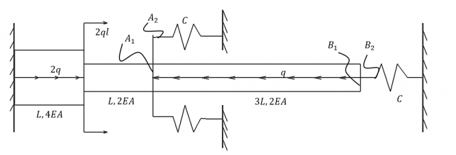 1. Используя метод сил, раскрыть статическую неопределимость. Найти силу в пружине в зависимости от жесткости С. Вычислить значения силы в пружине при С→0 и при С→ .