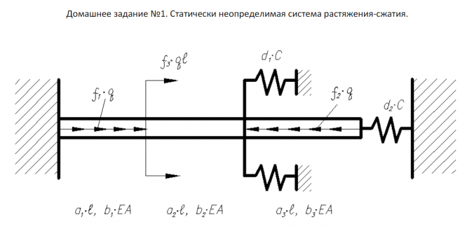ДЗ 1: Статически неопределимая система растяжения-сжатия вариант 13