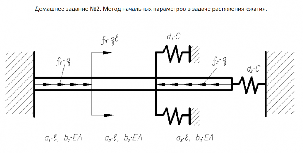 Для студентов МГТУ им. Н.Э.Баумана по предмету Прикладная механикаМетод начальных параметров в задаче растяжения-сжатияМетод начальных параметров в задаче растяжения-сжатия