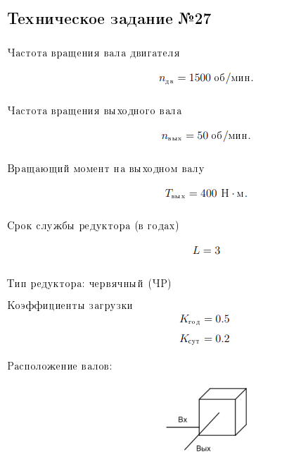 ДЗ: Червячный редуктор вариант 27