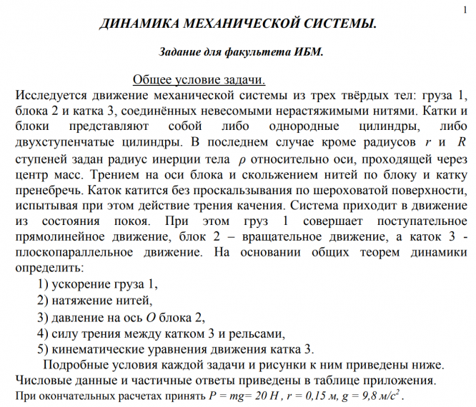 ДЗ 3: Динамика механической системы. вариант 18