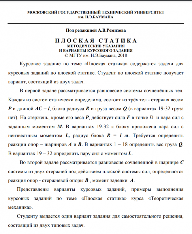 Для студентов МГТУ им. Н.Э.Баумана по предмету Прикладная механикаПлоская статика.Плоская статика.