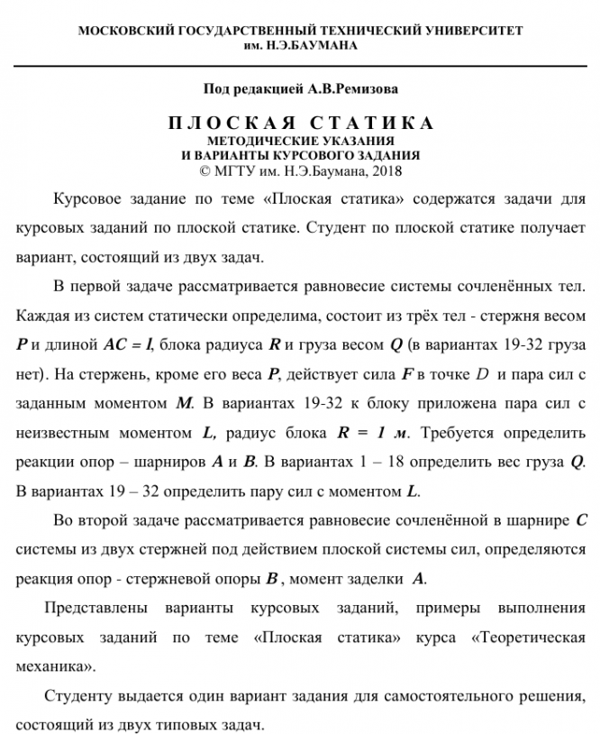 Для студентов МГТУ им. Н.Э.Баумана по предмету Прикладная механикаПлоская статикаПлоская статика