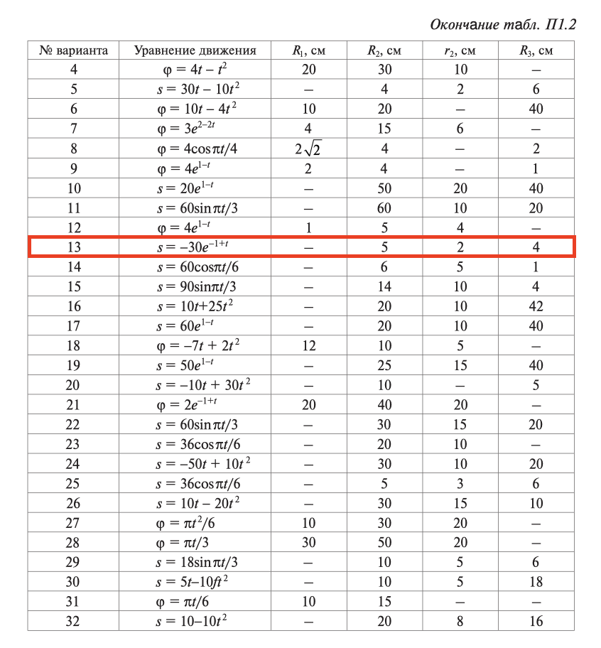 ДЗ 2: Кинематика точки. Кинематика простейших движений твердого тела вариант 13