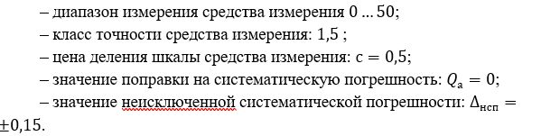 При однократном измерении физической величины получено показание средства измерения . Определить, чему равно значение измеряемой величины, если экспериментатор обладает априорной информацией о средстве измерений и условиях выполнения измерений согласно следующим данным: