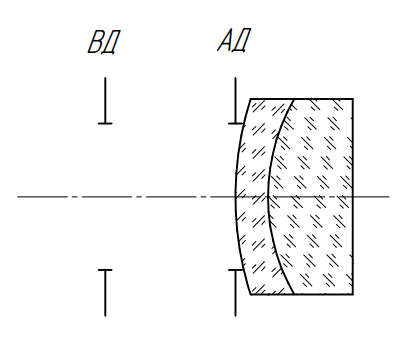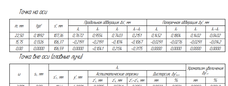 Рассчитан для длин волн λе=0,54607 мкм λF' =0,47999 мкм λC' =0,64385 мкм