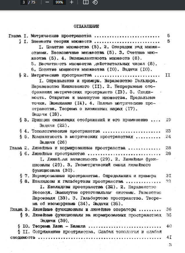 1. Определение и примеры. Неравенство Гельдера. Неравенство Минковского (II). 2. Непрерывные сто- бражения метрических пространств (ІЗ). 3. Сходи мость. Открытые и замкнутые множества. Предельные точки. Замыкание (14). 4. Полные метрические про- странства. Теорема о вложенных шарах (17). Задачи (18).