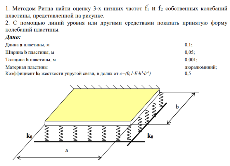 Для студентов МГТУ им. Н.Э.Баумана по предмету Прикладные задачи теории колебанийМетодом Ритца найти оценку 3-х низших частот f1 и f2 собственных колебаний пластиныМетодом Ритца найти оценку 3-х низших частот f1 и f2 собственных колебаний пластины