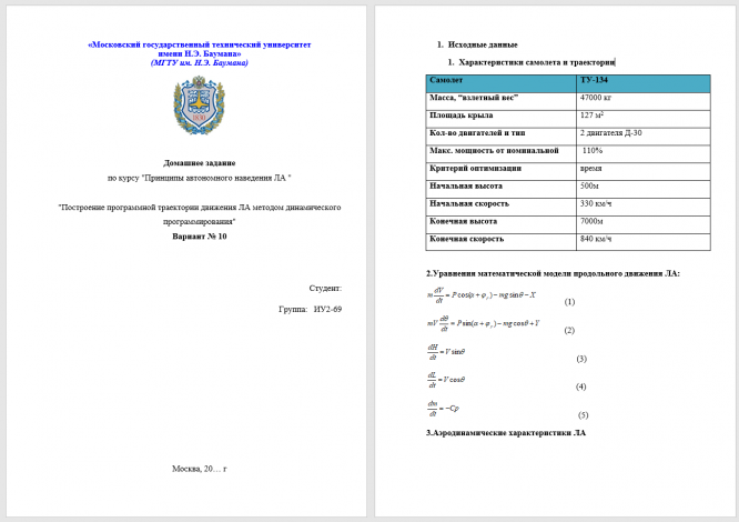 Для студентов МГТУ им. Н.Э.Баумана по предмету Принципы автономного наведенияПостроение программной траектории движения ЛА методом динамического программирования (ТУ-134)Построение программной траектории движения ЛА методом динамического программирования (ТУ-134)