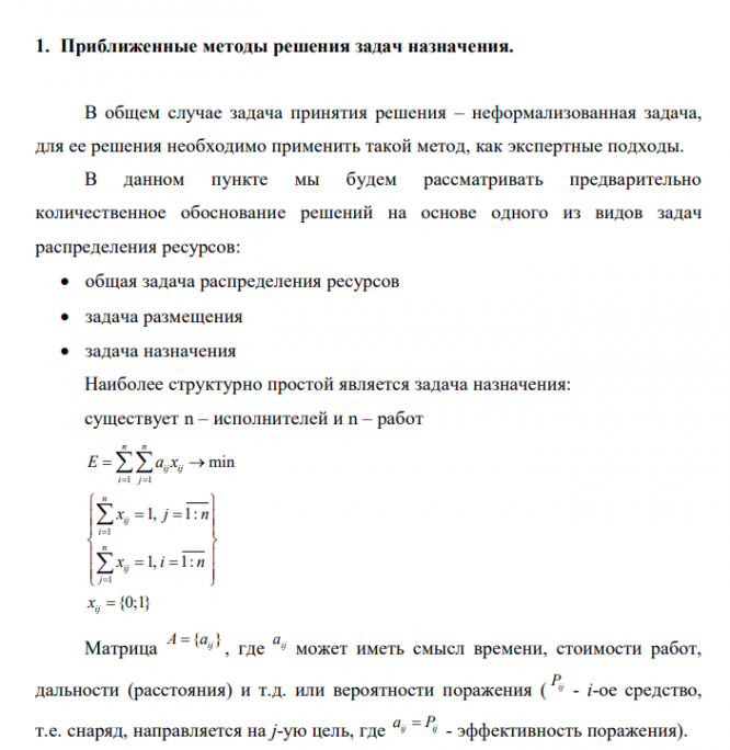 Для студентов МГТУ им. Н.Э.Баумана по предмету Принятие решений и проектирование многоуровневых системПриближенные методы решения задач назначенияПриближенные методы решения задач назначения