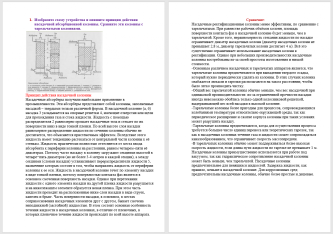 1. Изобразите схему устройства и опишите принцип действия насадочной абсорбционной колонны. Сравните эти колонны с тарельчатыми колоннами.