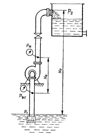 Главная » Учебные материалы » Процессы и аппараты химических технологий (ПАХТ) » Решения задач » Несколько классов/семестров » Номер 2 » Вариант 2 » Насос перекачивает жидкость плотностью 960 кг/м3 из резервуара с атмосферным давлением в аппарат, давление в котором составляет Pизб=37 кгс/см2. Высота подъёма 16 м. Общее сопротивление всасывающей и нагнетательной линий 65,6 м. Определить полный нап
