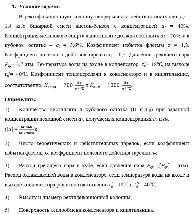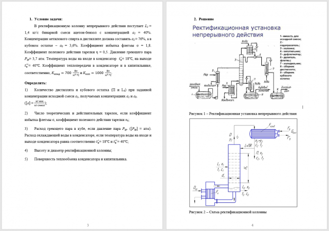 Для студентов РТУ МИРЭА по предмету Процессы и аппараты химической технологииРасчёт материальных потоков и размеров ректификационной колонныРасчёт материальных потоков и размеров ректификационной колонны