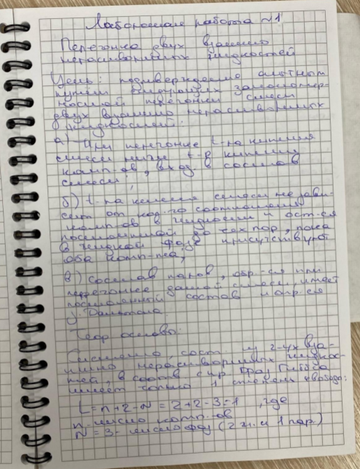 Лабораторная работа: Перегонка двух взаимно нерастворимых жидкостей