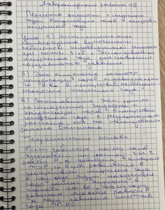 Лабораторная работа: Перегонка жидкости с инертным газом. Конденсация паров в присутствии инертного газа.