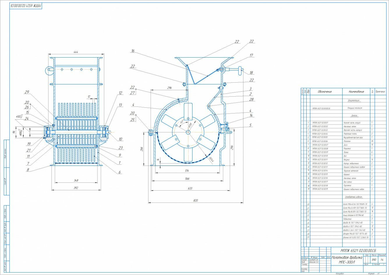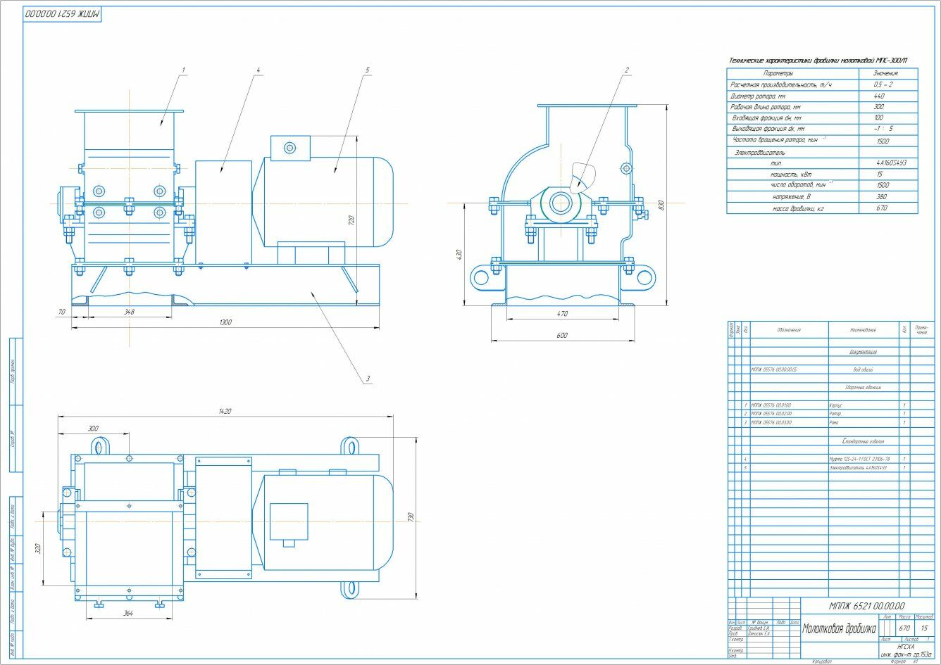 Графическая часть включает в себя: 1. Общий вид молотковой дробилки