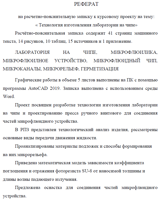Курсовая работа: Технология изготовления лаборатории на чипе
