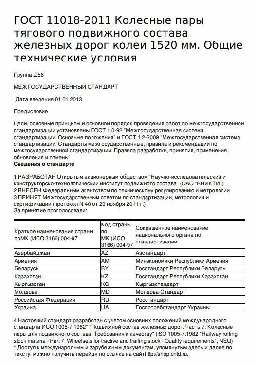 Стандарт: ГОСТ 11018-2011 Колесные пары тягового подвижного состава железных дорог колеи 1520 мм