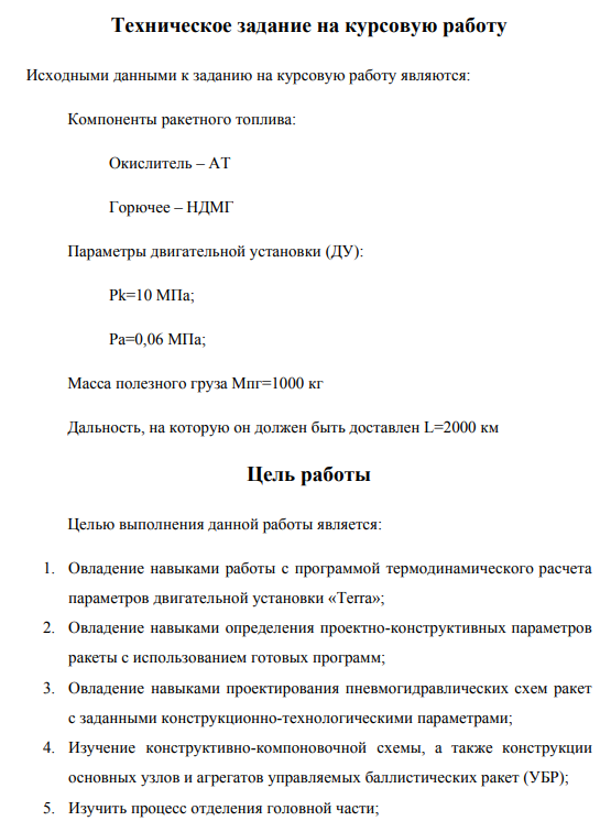 Курсовая работа: КП Проектирование баллистической ракеты вариант 2