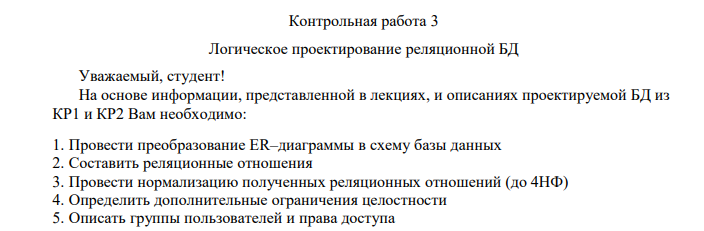 Для студентов ИДДО НИУ «МЭИ» по предмету Проектирование баз данныхКМ-3 Контрольная точка 3 БД для кинотеатраКМ-3 Контрольная точка 3 БД для кинотеатра