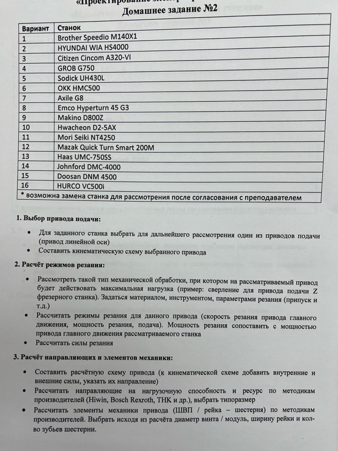 ДЗ 2: Расчёт привода подачи станка GROB G750 вариант 4