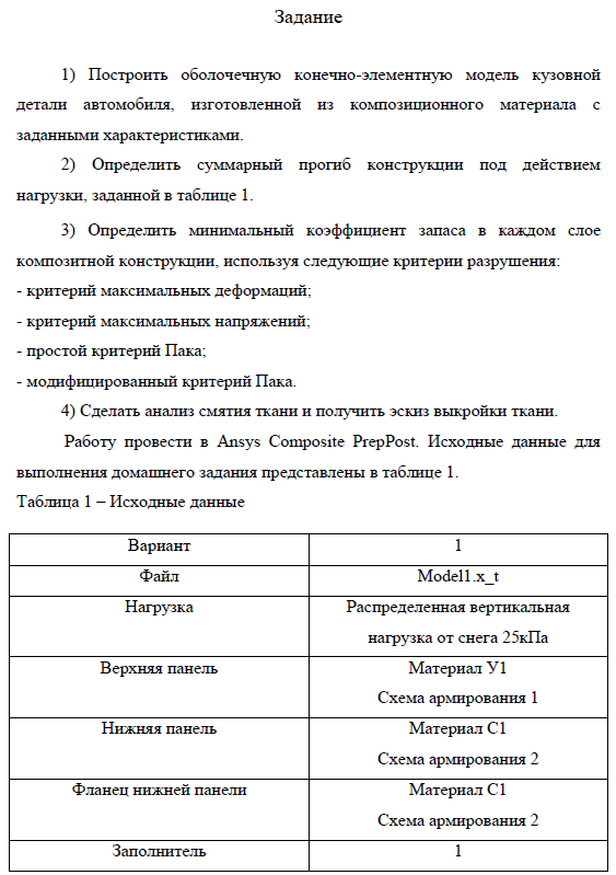 Для студентов МГТУ им. Н.Э.Баумана по предмету Проектирование элементов автомобиля и трактора из композиционных материаловДомашнее задание (вариант №1)Домашнее задание (вариант №1)