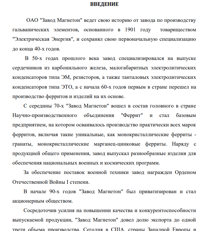 Реферат: Реферат на тему «ОАО «Завод «Магнетон»