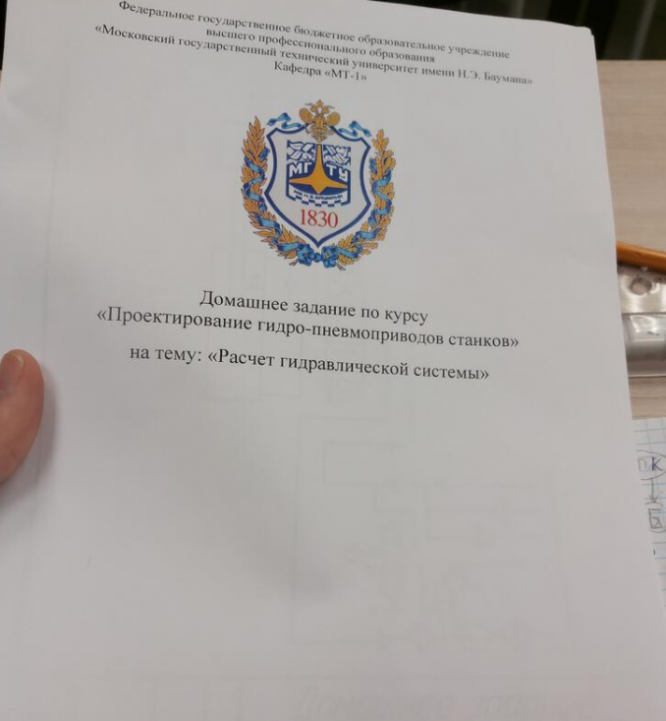 Для студентов МГТУ им. Н.Э.Баумана по предмету Проектирование гидро-пневмоприводов станковРасчет гидравлической системы (Вариат 1)Расчет гидравлической системы (Вариат 1)