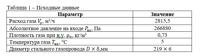 Подобрать оборудование для ГРУ. По следующим исходным данным, приведенным в таблице 1.