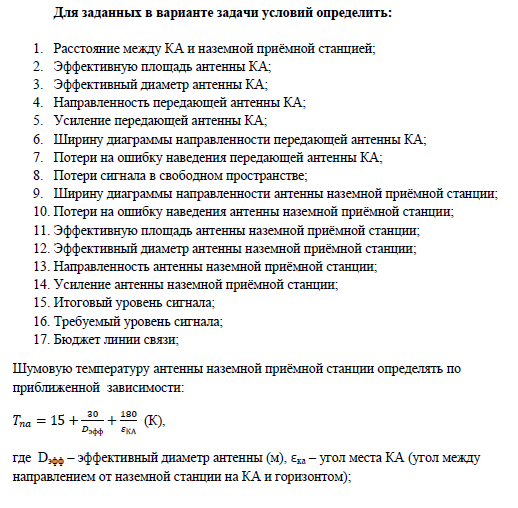 ДЗ: Оценка основных характеристик КА ДЗЗ и Оценка бюджета линии связи «КА-Земля» вариант 1