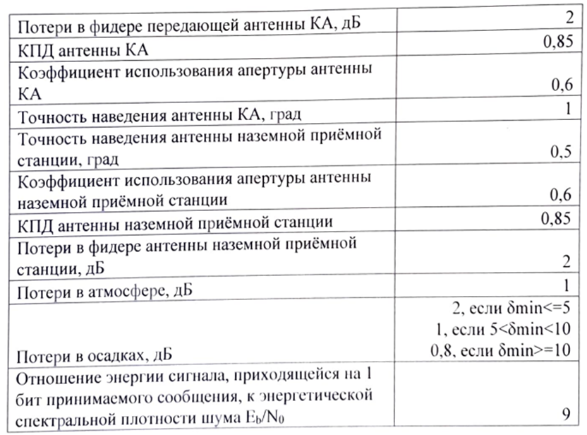 Задача №2 «Оценка бюджета линии связи «КА – Земля»»