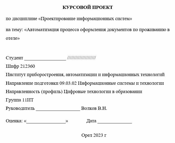 Для студентов ОГУ им. И.С. Тургенева по предмету Проектирование информационных системАвтоматизация процесса оформления документов по проживанию в отелеАвтоматизация процесса оформления документов по проживанию в отеле