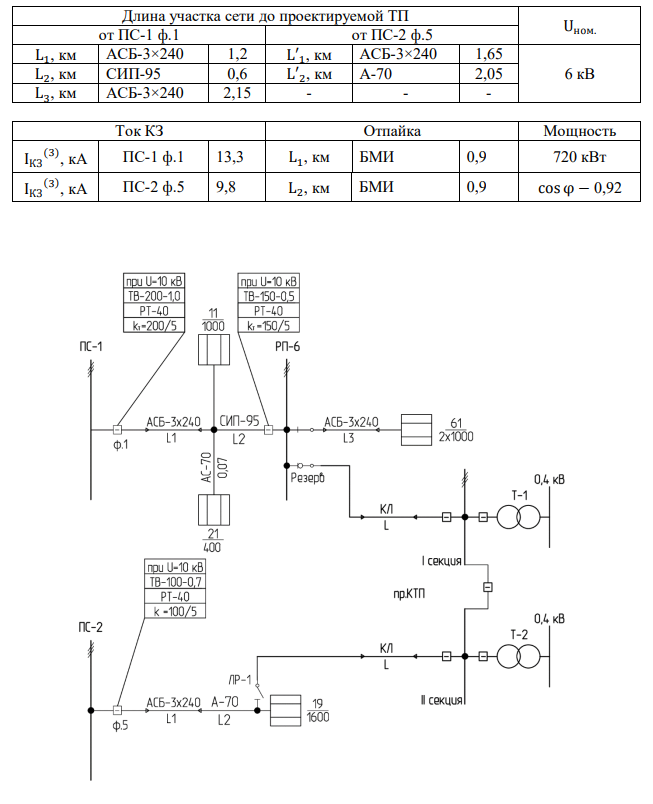 Необходимо выполнить проектирования новой трансформаторной подстанции 6/0,4 кВ с включением её в уже существующую сеть через, вновь вводимую, кабельную линию (марку и сечение КЛ-6 кВ определить проектом). Курсовым проектом предусмотрено: