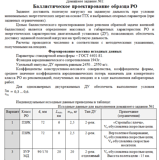 Для студентов МГТУ им. Н.Э.Баумана по предмету Проектирование ракетного оружияВариант 3 - ДЗ Баллистическое проектирование образца РО "Панцирь"Вариант 3 - ДЗ Баллистическое проектирование образца РО "Панцирь"