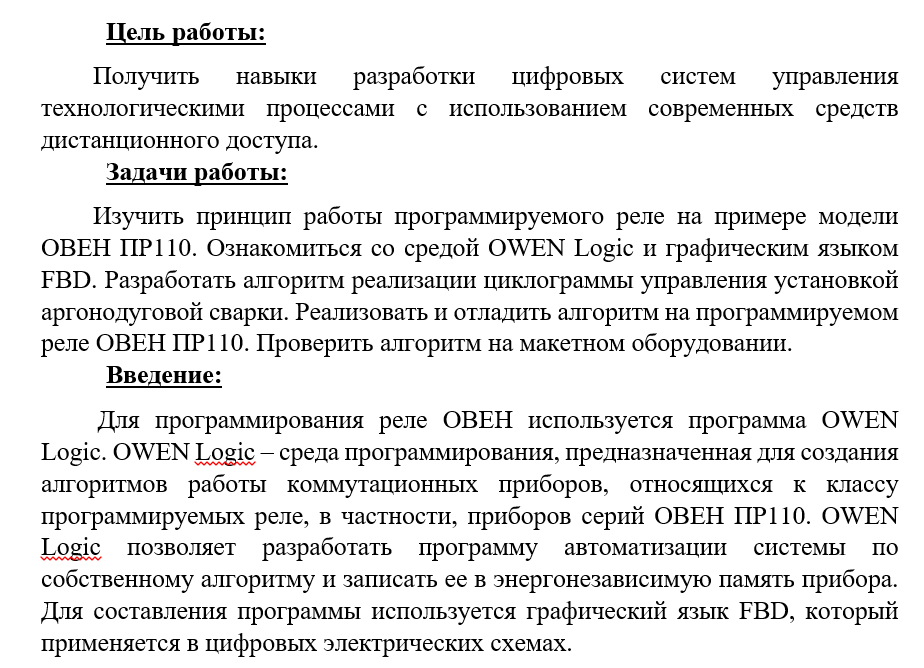 Для студентов МГТУ им. Н.Э.Баумана по предмету Проектирование систем управления роботизированных комплексовРазработка циклограммы управления установкой аргонодуговой сварки на программируемом реле ОВЕН ПР110Разработка циклограммы управления установкой аргонодуговой сварки на программируемом реле ОВЕН ПР110