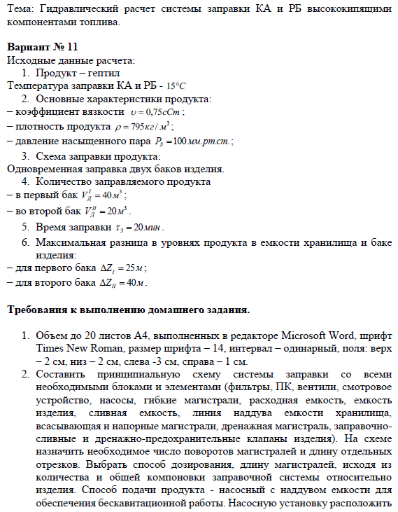 Для студентов МГТУ им. Н.Э.Баумана по предмету Проектирование систем заправки ракетДомашнее задание (вариант №11)Домашнее задание (вариант №11)