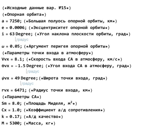 ДЗ: Проектирование спускаемого аппарата вариант 15