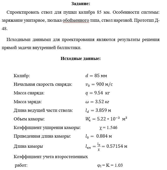 Для студентов МГТУ им. Н.Э.Баумана по предмету Проектирование ствольного оружияПроектирование ствола моноблока 85ммПроектирование ствола моноблока 85мм