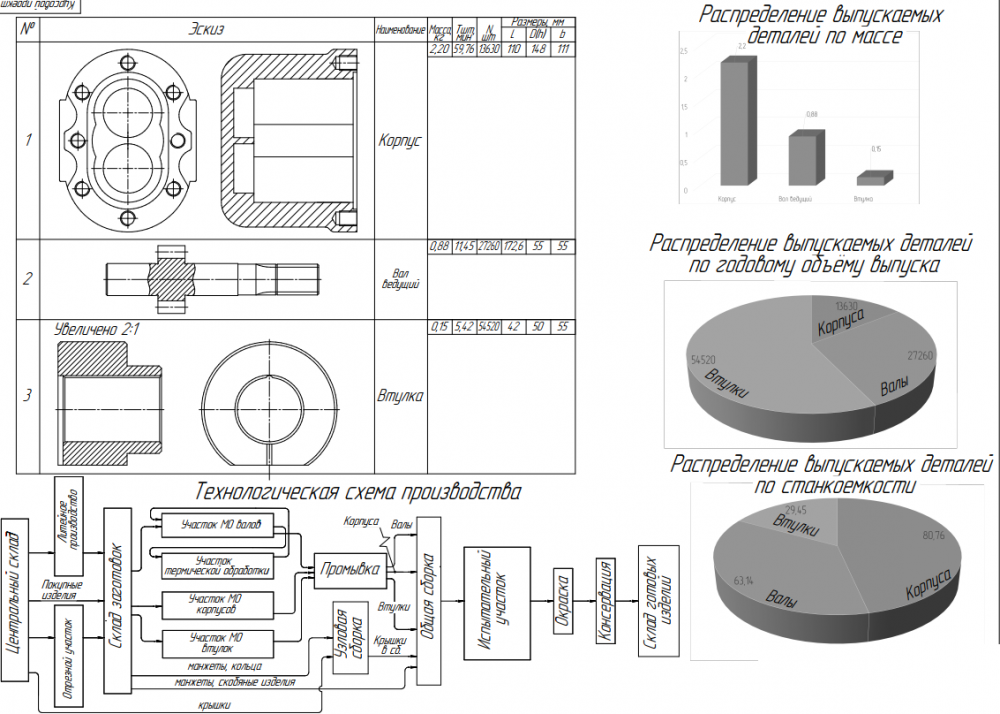 В рамках курсового проекта анализируются исходные чертежи деталей-представителей,