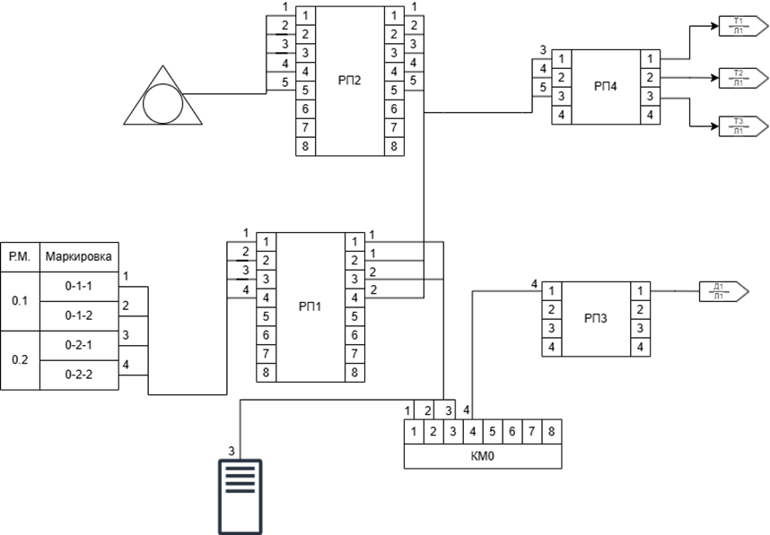 Рисунок 2 - Схема кабельных соединений для РШ1