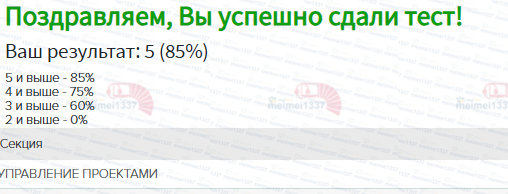 Для студентов ИДДО НИУ «МЭИ» по предмету Проектная деятельностьКМ-3. Управление проектами. Тестирование - 85%КМ-3. Управление проектами. Тестирование - 85%