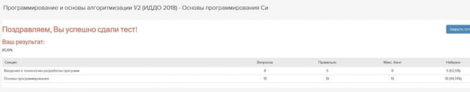Ответы к контрольной работе: Тест 1. Основы программирования Си - 85,19%