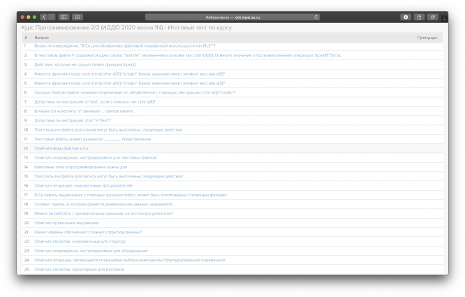Для студентов НИУ «МЭИ» по предмету Программирование и алгоритмизацияИтоговый тест 100% - 2020 годИтоговый тест 100% - 2020 год