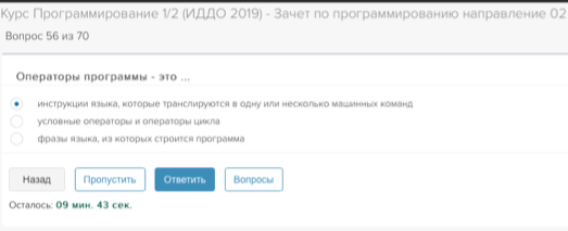 Для студентов НИУ «МЭИ» по предмету Программирование и алгоритмизацияИтоговый тест 85%Итоговый тест 85%
