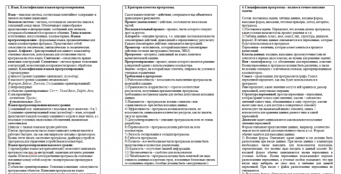 Характеристики ответов (шпаргалок) к экзамену