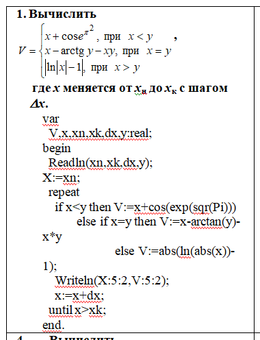 1. Вычислить, где x меняется от xн до xк с шагом Dx.