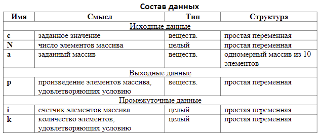 Дан массив а из N элементов (N≤10). Вычислить произведение элементов массива, меньших заданного значения с.