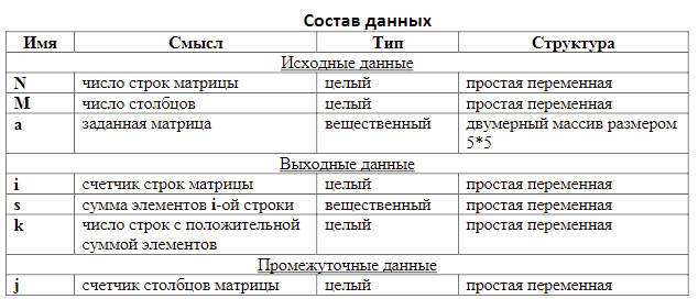 Дана матрица а из N строк и M столбцов (N≤5, M≤5). Для каждой строки матрицы найти сумму элементов и определить число строк, для которых эта сумма положительна.