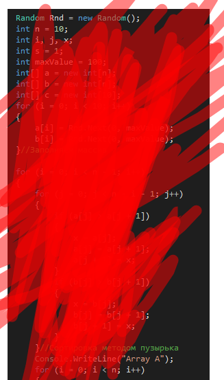 Для вывода на экран числовых и символьных значений используется стандартный метод WriteLine() класса Console: Console.WriteLine(\"a = \" + a); Этот метод выводит на консоль текстовую строку, получаемую сцеплением строковой константы \"a = \" и числового значения переменной a, которое перед выводом автоматически преобразуется в текстовую строку. Сцепление текстовых строк производится с помощью операции «+». 4) Если теперь объединить все вышеописанное вместе, Знакомство с интегрированной средой Разработки Visual Studio. Вычисление арифметических выражений. Обработка одномерных массивов .