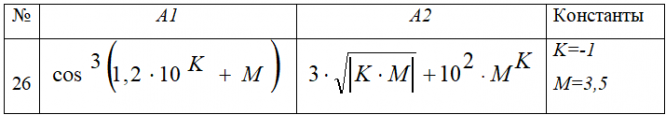 Составить программу вычисления функции У=А12. Выражения для вычисления числителя А1 и знаменателя А2: